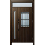 ドアリモD30 断熱ドア E12N YA ランマ付親子 外額縁80 顔認証キー洋風カーブ ブラック 子扉:K06N |