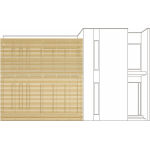 【関東間 3間×9尺 片入隅納まり 線画Ver.】フレームユニット:ハイタイプ(H2)、格子ユニット:ハイ横スクリーン(KG)、床ユニット:リウッド [OP]1階格子ユニット:横スクリーン(KG) |