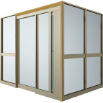 風除室 セフター3 組合せ紹介 L字納まり(正面:片引戸+FIX部、袖部:FIX部) H2 + 木調アタッチメント(無目に2枚) KG + 袖スクリーン(たて型スライド換気ユニット) H2 |