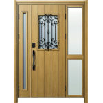 ドアリモD30 断熱ドア E11N KG 袖付親子(中桟付) 外額縁80 顔認証キー洋風カーブ ブラック 子扉:K06N |