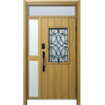 ドアリモD30 断熱ドア E10N KG ランマ付片袖FIX(中桟付) 外額縁80 顔認証キー洋風カーブ ブラック |