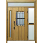 ドアリモD30 断熱ドア E12N KG ランマ付袖付親子(中桟付・ポスト付) 外額縁80 ピタットキー洋風カーブ ブラック 子扉:K06N |