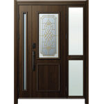 ドアリモD30 断熱ドア E07N YA 袖付親子(中桟付・ポスト付) 外額縁80 顔認証キーストレート ブラック 子扉:K07N |