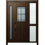 ドアリモD30 断熱ドア E12N YA 袖付親子(中桟付・ポスト付) 外額縁80 ロートアイアン調 ブラック 子扉:K06N |