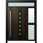 ドアリモD30 断熱ドア F05H YA※B7枠 ランマ付袖付親子(中桟付) 外額縁80 ピタットキーストレート ブラック 子扉:K11N |