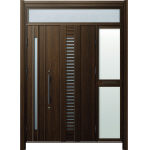 ドアリモD30 断熱ドア C11N YA ランマ付袖付親子(中桟付・ポスト付) 外額縁80 丸型ストレート ブラック 子扉:K08N |