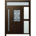 ドアリモD30 断熱ドア E10N YA ランマ付袖付親子(中桟付) 外額縁80 ロートアイアン調 ブラック 子扉:K06N |