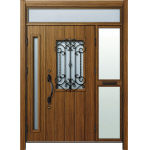 【2026年5月1日受注開始予定】ドアリモD30 断熱ドア E11N PR ランマ付袖付親子(中桟付・ポスト付) 外額縁80 ロートアイアン調 ブラック 子扉:K06N |