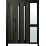 【2026年5月1日受注開始予定】ドアリモD30 断熱ドア F04H YD※B7枠 袖付親子(中桟付・ポスト付) 外額縁80 顔認証キーストレート ブラック 子扉:K11N |