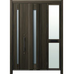 【2026年5月1日受注開始予定】ドアリモD30 断熱ドア C04N YD 袖付親子(中桟付・ポスト付) 外額縁80 丸型ストレート ブラック 子扉:K08N |