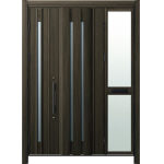 【2026年5月1日受注開始予定】ドアリモD30 断熱ドア C05N YD 袖付親子(中桟付・ポスト付) 外額縁80 丸型ストレート ブラック 子扉:K08N |