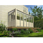 ソラリア テラス囲い/木調ガーデンルームタイプ/デッキ納まり/ノーマルタイプ(ランマなし)/600N/[m2] (積雪〜20cm地域用)・フラット型/関東間/間口2間×奥行9尺/正面・両側面:折りたたみ戸/プラチナステン・バニラウォールナット/屋根ふき材:熱線遮断ポリカーボネート板・クリアマット/化粧パネル(正面・両側面)/リウッドデッキ S 間口3間×奥行12尺/Sタイプ/ホワイトブラウン/天井カーテン(ホワイト)/リウッド ステップ5型 Sタイプ(2段) |