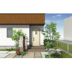 ルシアス ポストユニットSJ01型 PR色 + ルシアス サイデイング PR色 + ドアリモ 玄関ドアD30 N14N JJ色 |