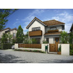 ルシアス バルコニー 持ち出し式 横格子 格子 PR 後付け手すり(内ハング)付 手すり・支柱・桁・梁 B7 間口2間x奥行6尺、ルシアス フラワーボックス 横格子 PR、ルシアス フェンスYS3F型 PR B7、ポスト フィッテ UA、玄関ドア ヴェナートD30 E10 KE 片開き |