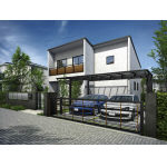 ルシアス アップゲートワイド01型 電動・ハイルーフタイプ 54-12H(PR/B7) 施工例/エフルージュツイン 51-54(B7)+ルシアス門扉AP01型(B7)+ルシアスフェンスJ01型 T80(B7)+スマートドア ヴェナートP04(B7) |