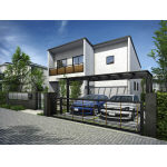 ルシアス アップゲートワイド01型 電動・ハイルーフタイプ 54-12H(PR/B7) 施工例/エフルージュツイン 51-54(B7)+ルシアス門扉AP01型(B7)+ルシアスフェンスJ01型 T80(B7)+スマートドア ヴェナートP04(B7) |