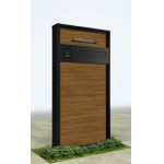 正面パネル・笠木・幅木 B7:カームブラック、本体パネル PR:ドライチーク、ステンレスモダン表札・インターホン加工付き・ポスト加工付き(エクステリアポストG3型) |