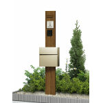ルシアス 機能門柱 B01型(PR) ポストT10型(H2) + 市販品表札:ステンレスヘアライン表札YEMP-S-121 + 照明17型(PR) |