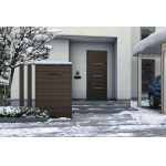 ルシアス ウォール 03型 スモークエルム、カスタマイズパーツ枕木材(90×90) スモークエルム、壁付防風ポスト ブラック、スマートドア ヴェナート W11(YD:スモークエルム) |