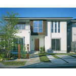 ルシアス 機能門柱 B01型(PR) ポストT9型(H2) + 市販品表札:3九谷焼表札1_3 + 照明17型(PR)、ヴェナート S22 親子(PR) |