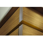 横系の格子端部に木質感を演出するため1本ごとにキャップを取付け。万が一、格子内に水が浸入しても、水抜き穴から排水。 |