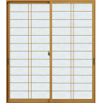 ウチリモ 引違い窓(2枚建) テラスタイプ CE 和紙調ガラス+単板ガラス用組子 横繁吹寄格子 |