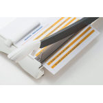 高級感と軽さを追求するため、台盤は木を採用。美しく塗装された台盤には、主要サイズの用紙寸法の印刷を施しました。又、スライド式の移動定規は、台盤の手前だけでなく奥にも装着が可能です。