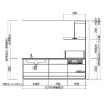 ホームビルダー様向け(キッチン、洗面、浴室)キッチンオフェリアスリム対面プラン2590・シンク横125足元スライドLタイプ