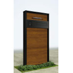 正面パネル・笠木・幅木 B7:カームブラック、本体パネル YF:キャラメルチーク、ステンレスモダン表札・インターホン加工付き・ポスト加工付き(エクステリアポストG3型) |
