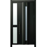 ドアリモD30 断熱ドア C04 K5 片袖FIX(中桟付・ポスト付) 外額縁80 丸型ストレート ブラック |
