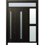 ドアリモD30 断熱ドア C07 W6 ランマ付袖付親子(中桟付・ポスト付) 外額縁80 角型ストレート ブラック 子扉:K08N |