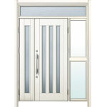 ドアリモD30 アルミドア S05 YW ランマ付袖付親子(中桟付) 外額縁80 丸型ストレート シルバー 子扉:06 |
