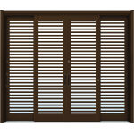 ドアリモ玄関引戸 伝統和風 A10(複層・単板ガラス仕様) B1 9尺4枚建(ランマ無) 外額縁50 舟底引手 ブロンズ系 |
