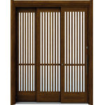 ドアリモ玄関引戸 袖付2枚連動引込み戸 Y04(複層・単板ガラス仕様) YF 6尺 外額縁80 外側バーハンドル ブロンズ系 |
