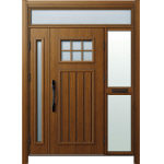 ドアリモD30 断熱ドア E01 KE ランマ付袖付親子(中桟付・ポスト付) 外額縁80 ピタットキー洋風カーブ ブラック 子扉:K06N |