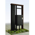 正面パネル・格子・機能柱 B7:カームブラック、笠木 YA:ステインウォールナット、表札:KYSK15-E-E-27 |