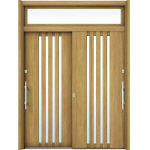 ドアリモ玄関引戸 洋風ベーシック B04(複層ガラス仕様) KG 6尺2枚建(ランマ付) 外額縁50 外側バーハンドル シルバー系 |
