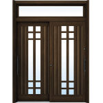 ドアリモ玄関引戸 洋風ベーシック B09(複層ガラス仕様) YA 6尺2枚建(ランマ付) 外額縁50 外側バーハンドル ブラック系 |