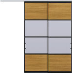 KMK20187B2S5 スクリーンパーティション 間仕切 片引き戸 C5 (2枚建_上吊り) 枠:DA 扉フレーム:K2 面材:S5×スモークグレークリアマット調