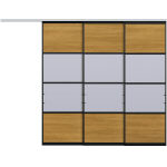 KMK20187C2S5 スクリーンパーティション 間仕切 片引き戸 C5 (3枚建_上吊り) 枠:DA 扉フレーム:K2 面材:S5×スモークグレークリアマット調