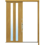 DHZZ0444 ドアリモアウトセット玄関引戸 片引込み戸(袖付) B02 KG 外額縁(小) 外側バーハンドル シルバー系 オープン時