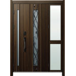 ドアリモD30 断熱ドア E09T(通風) YA 袖付親子(中桟付) 外額縁80 顔認証キー洋風カーブ ブラック 子扉:K08N |