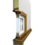 マドリモ 断熱窓 戸建用 樹脂窓 引違い窓 三方ワイ ドケーシング90見付+テラス用下枠 断面図 ※木額縁S5(カームナチュラルチェリー)色 |