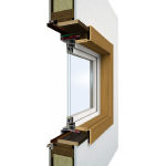 マドリモ 断熱窓 戸建用 樹脂窓 Low-E複層ガラス 既設:プロジェクト窓四方返し付ケーシング90見付 断面図 ※木額縁S5(カームナチュラルチェリー)色 |