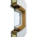 マドリモ 断熱窓 戸建用 アルミ樹脂複合窓 たてすべり出し窓 四方返し付ケーシング90見付 断面図 ※木額縁S5(カームナチュラルチェリー)色 |